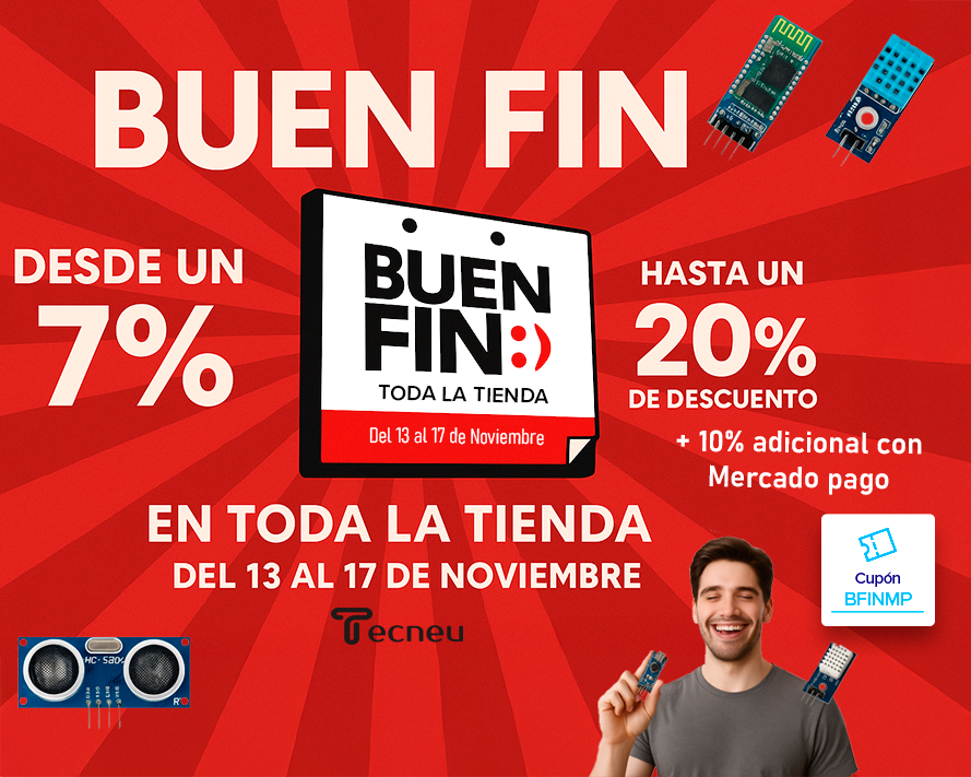 Tecneu, tu destino perfecto para electrónica y desarrollo de proyectos. Nuestro extenso catálogo incluye más de 1000 productos innovadores, desde Sensores y Tarjetas de Desarrollo hasta soluciones de Energía, Módulos, Audio y Robótica. Estamos orgullosos de ofrecer nuestra amplia gama de productos de alta calidad a lo largo y ancho de toda la República Mexicana, asegurando que cada cliente encuentre exactamente lo que necesita para llevar sus proyectos al siguiente nivel.