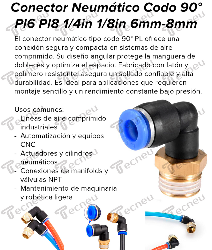 Conector Neumático en Codo Ángulo 90° PL6-01/02 PL8-01/02 1/4" 1/8" 6/8mm