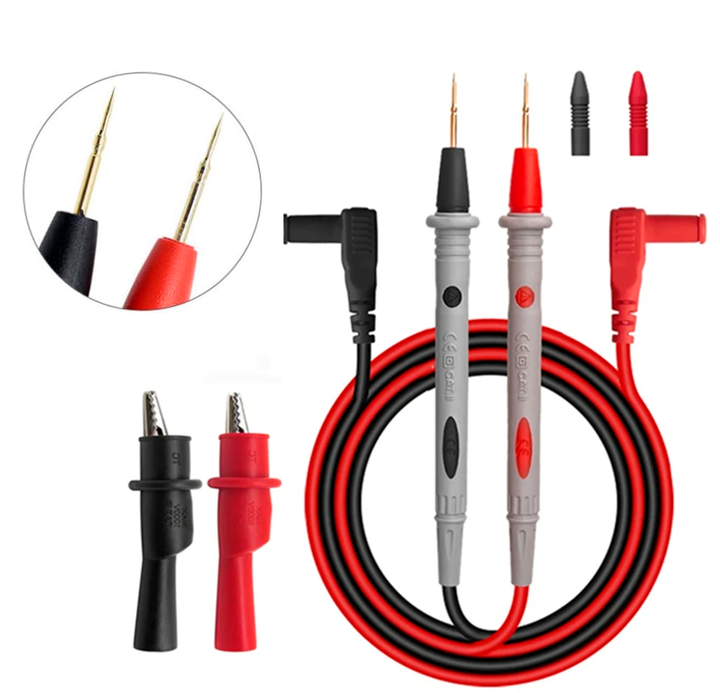 Las puntas de multímetro universales con puntas de aguja son el accesorio ideal para realizar mediciones eléctricas seguras y precisas en todo tipo de entornos. Diseñadas con una longitud de cable de 90 cm, ofrecen excelente maniobrabilidad y comodidad durante su uso. Su clasificación CAT III 1000V / 20A garantiza una protección superior en instalaciones industriales o residenciales, mientras que las puntas de caimán empotrables (clasificación CAT II 1000V / 10A) permiten realizar conexiones firmes sin riesgo de deslizamiento. Además, las puntas de aguja incluyen tapones de plástico que previenen daños y mejoran la seguridad cuando no están en uso, haciendo de este set una opción práctica, duradera y confiable para profesionales y aficionados.